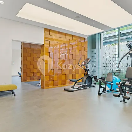 There is a fully furnished kitchen with a microwave oven, a fridge, and kitchenware. The café Coffee Toffee is situated just a minute's drive from the apartment. Guests might also participate in fitness classes for an enhanced stay. An outdoor swimming pool can be found on the premises.